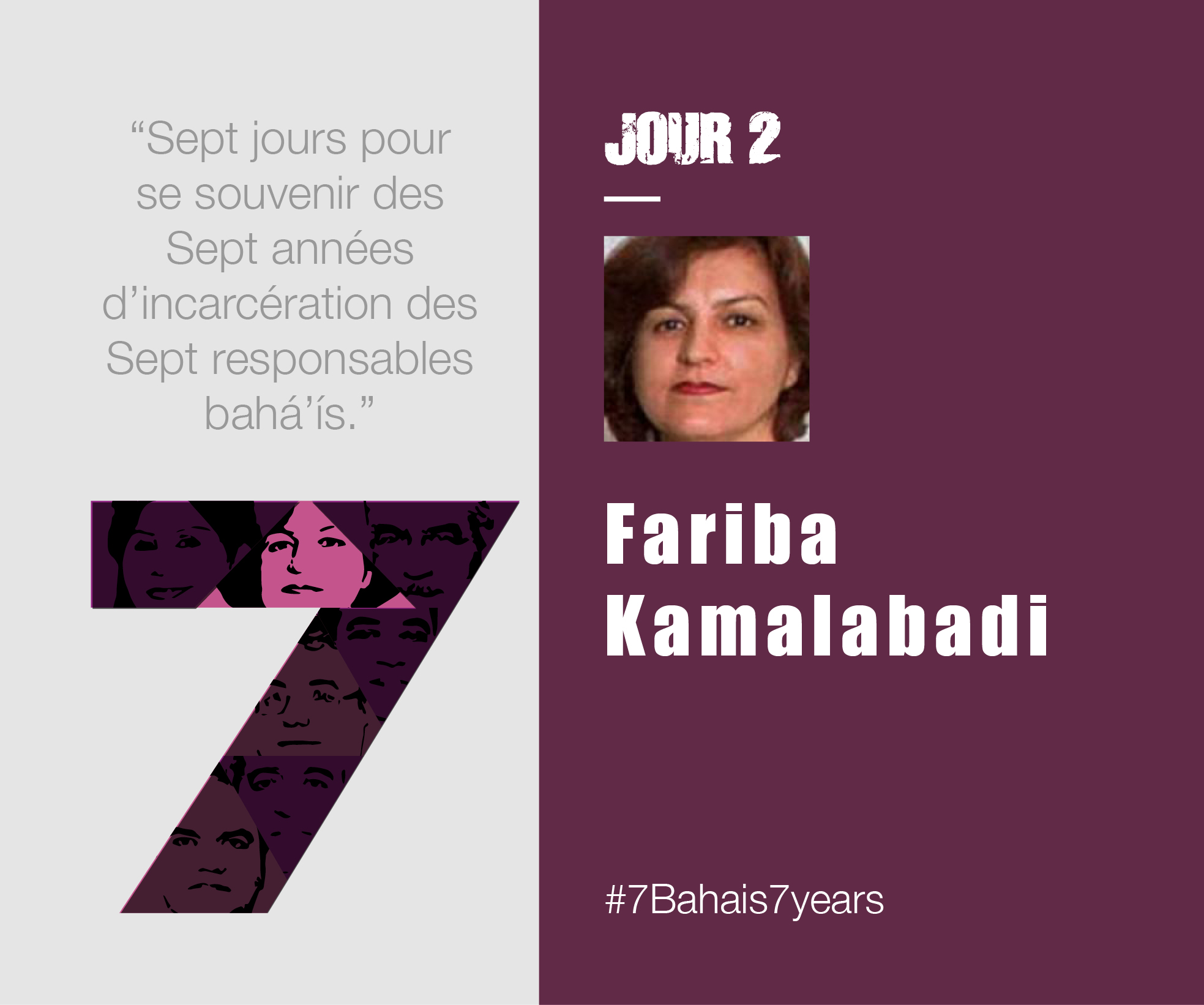 Fariba Kamalabadi, 53 ans, psychologue du développement, mère de trois enfants, fut, dans sa jeunesse, privée d’études dans une université publique à cause de sa croyance bahá’íe. Madame Kamalabadi est née à Téhéran le 12 septembre 1962. Excellente étudiante, elle a été diplômée du lycée avec les félicitations, mais a néanmoins été refusée à l’inscription à l’université. Elle entama alors un programme de huit ans d’études et elle a finalement reçu un diplôme en psychologie du développement de l’Institut bahá’í d’enseignement supérieur (Institute Bahá’í of Higher Education), une institution alternative établie par la communauté bahá’íe d’Iran pour donner à ses jeunes l’opportunité de suivre des études supérieures.