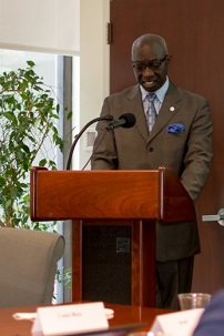 M. William Vendley, le secrétaire général de Religions pour la paix, s’exprimant à Unseen Valor : Acts of Interfaith Courage in the Promotion of Freedom of Religion or Belief (Valeur invisible : actes de courage interreligieux dans la promotion de la liberté de religion ou de la croyance), évènement qui s’est tenu le 15 mai 2014 au bureau de la Communauté internationale bahá’íe à New York.