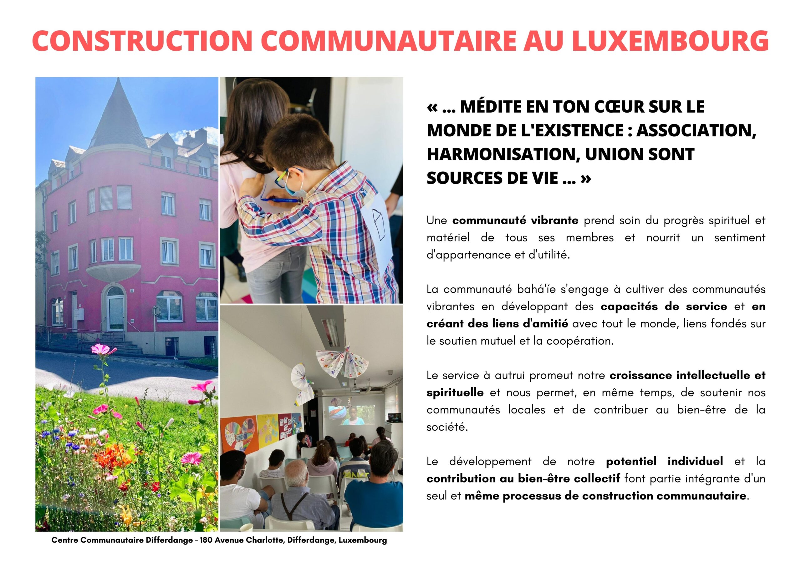 La communauté bahá'íe s'engage à cultiver des communautés vibrantes en développant des capacités de service et en créant des liens d'amitié avec tout le monde, liens fondés sur le soutien mutuel et la coopération.