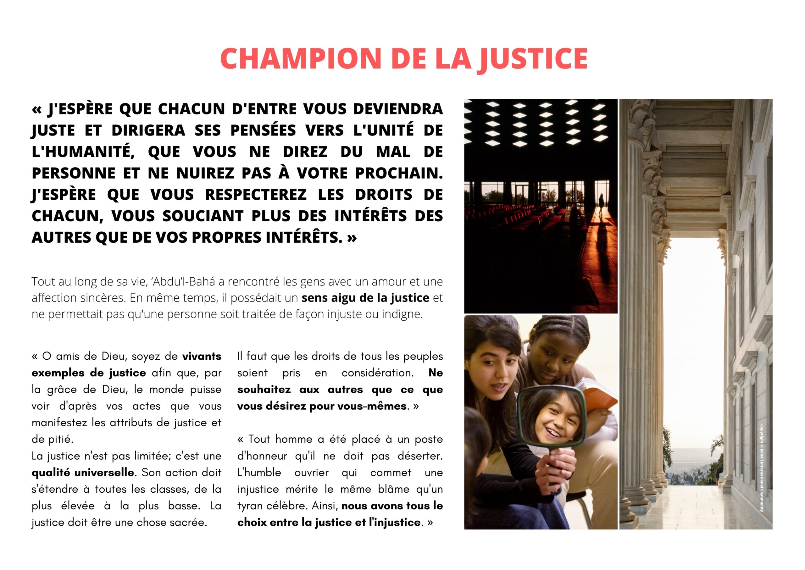 « O amis de Dieu, soyez de vivants exemples de justice afin que, par la grâce de Dieu, le monde puisse voir d'après vos actes que vous manifestez les attributs de justice et de pitié.