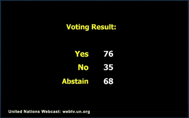 The resolution was passed by the Third Committee of the General Assembly, which monitors human rights issues worldwide. The vote was 76 to 35 with 68 abstentions.